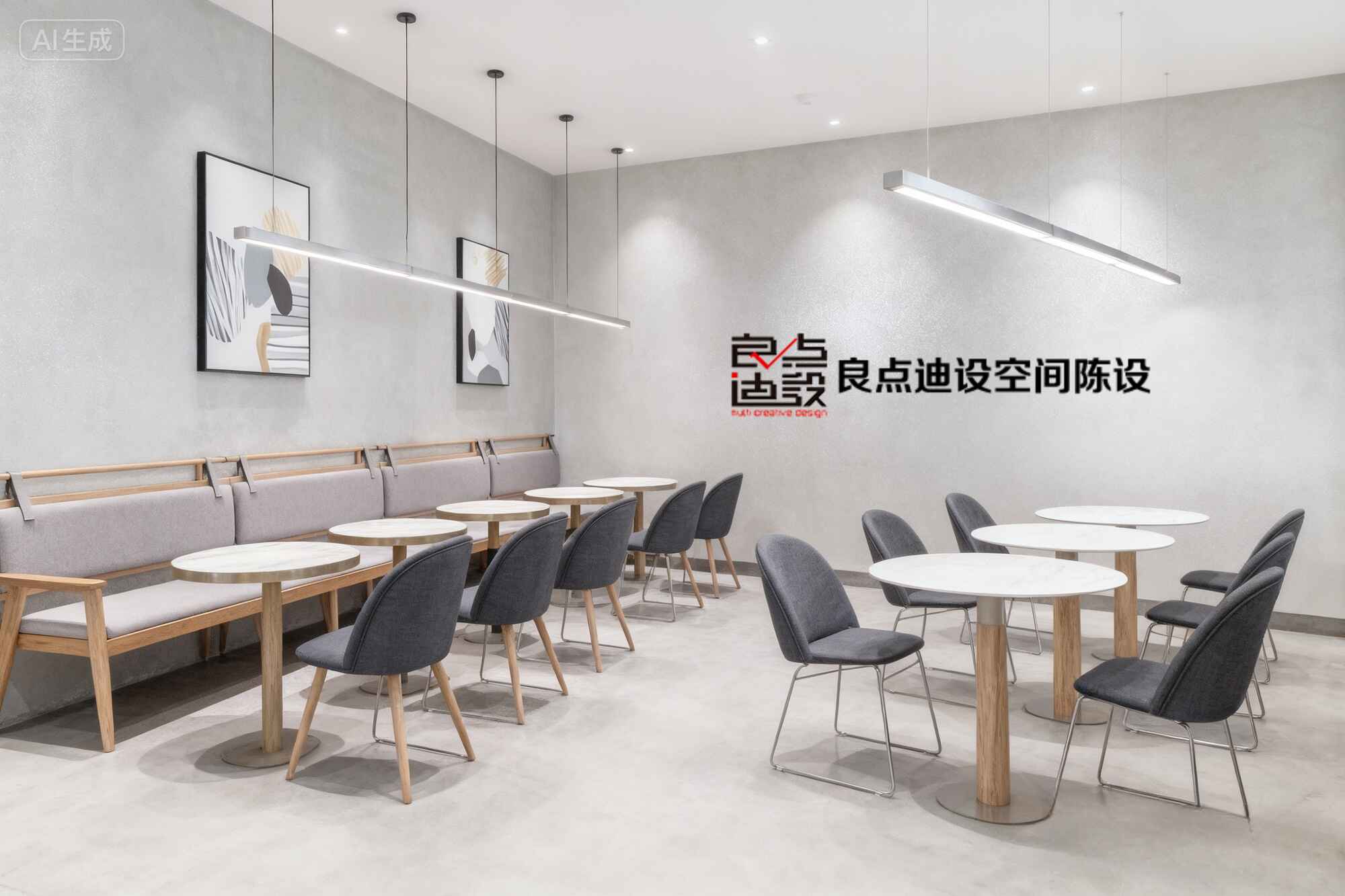 👉 整体风格是现在超受欢迎的简约温馨风,但一点都不“性冷淡”!墙面用了浅灰色打底,挂上几幅抽象装饰画,立马就有艺术那味儿了~地面是浅色地砖,干净又显亮堂,尤其适合采光不太强的小店。