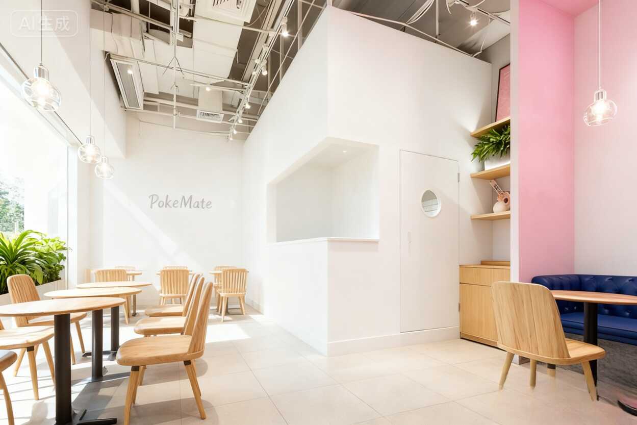 姐妹们!这家以"ALOHA"为主题的波奇碗餐厅也太会了吧!一进门就被满墙的彩色卡片惊艳到 - "SALMON""Poke Bowl"字样与棕榈树图案随风轻摇,瞬间穿越到夏威夷海边。深蓝色皮质卡座搭配原木圆桌,度假感直接拉满!