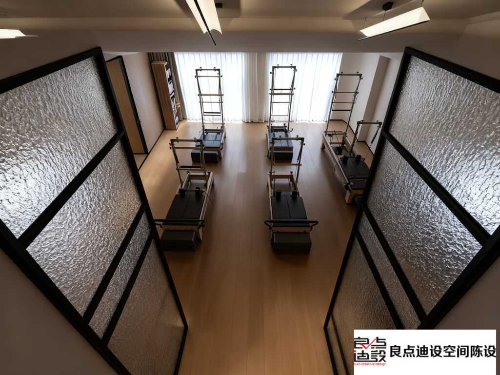 两侧用带肌理的玻璃做隔断,这设计真心聪明!既划出了功能分区,又不阻挡光线穿透,空间通透感直接拉满。磨砂质感还自带朦胧美,学员在里头练习也不会被外界干扰,私密性和开放性平衡得刚刚好。