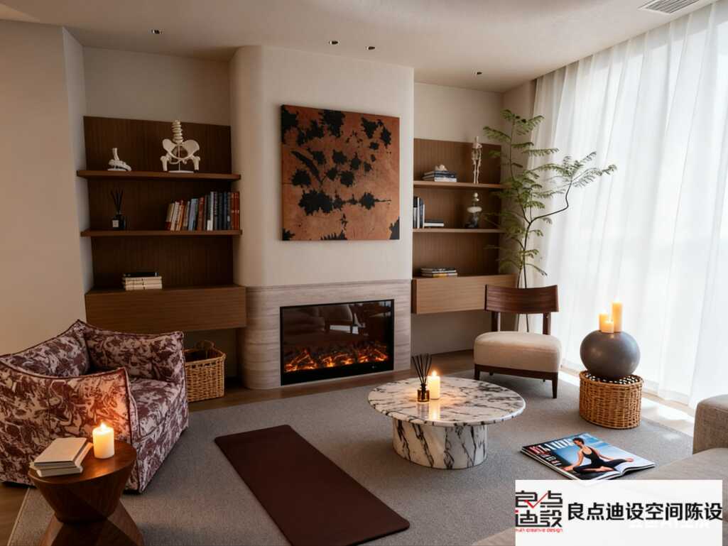 壁炉+瑜伽垫=治愈满分!这个普拉提风客厅美到想24小时宅家🔥_旺财28北京软装设计公司