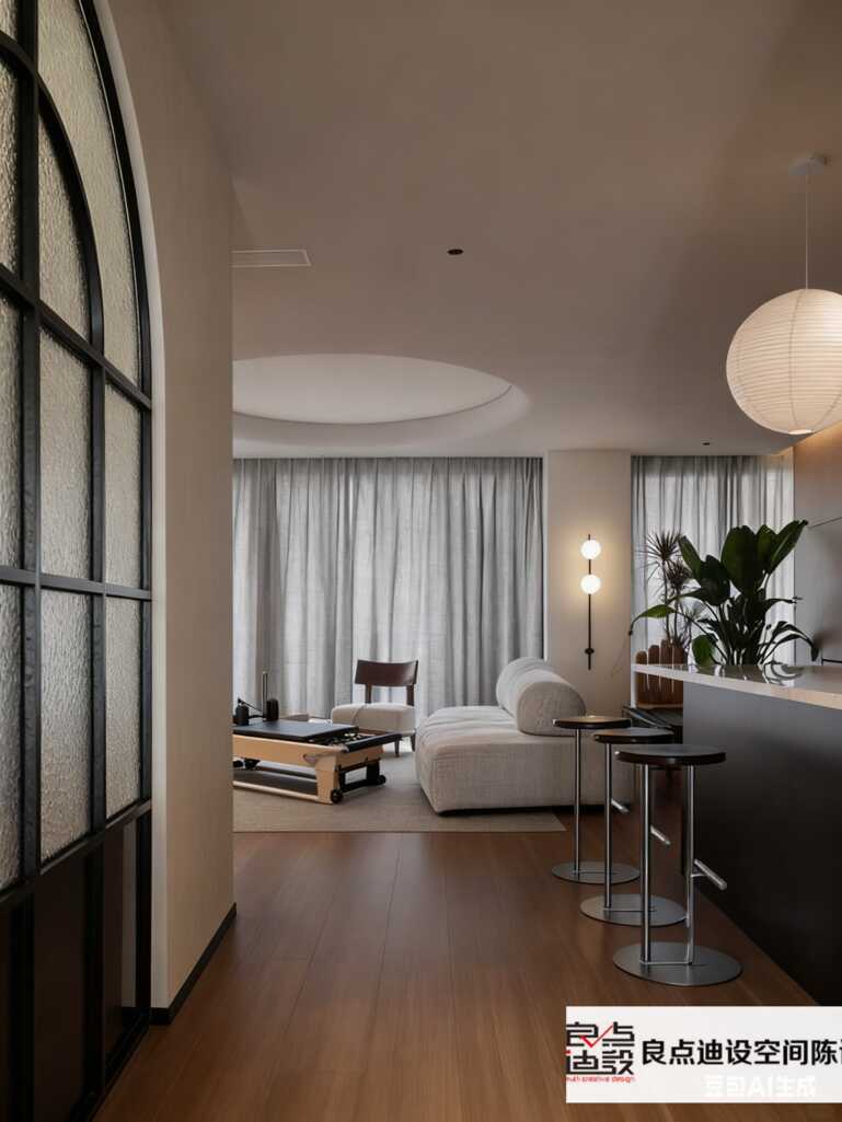 深色吧台+拱形玻璃!这间普拉提房的高级感直接拉满🔥_旺财28北京软装设计公司