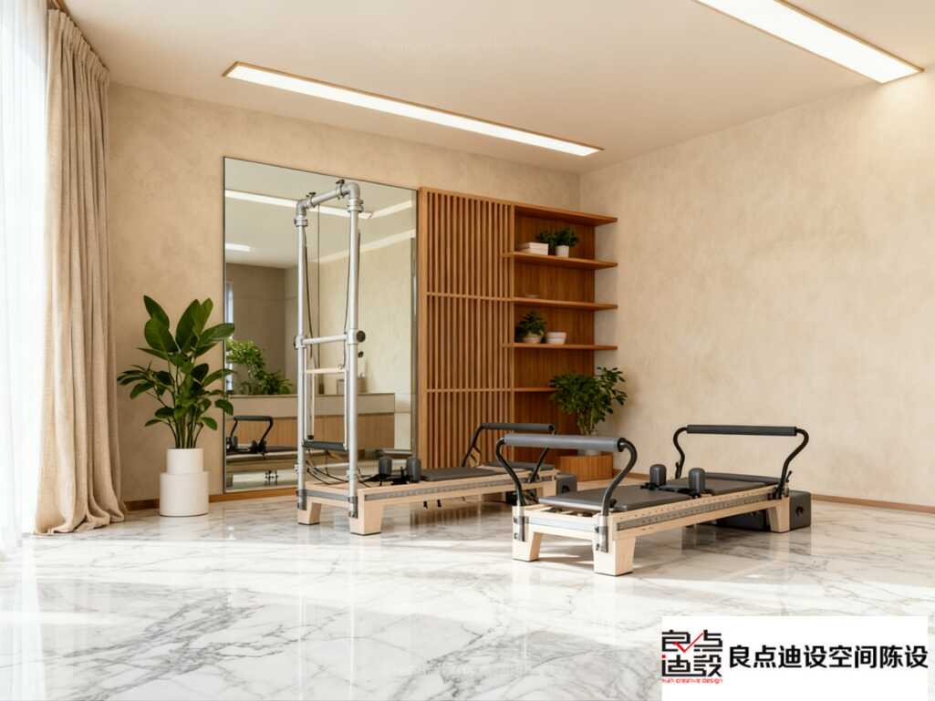 普拉提器械的选择也很用心哦~ 浅木色的框架搭配黑色的配件,和整体的温柔色调***融合,一点都不突兀~ 而且器械的摆放也很讲究,留出了足够的活动空间,练起来完全不会觉得拥挤~ 还有那个垂感超好的米色窗帘,阳光透过窗帘洒进来的时候,整个空间都变得暖洋洋的,练普拉提的时候心情都会变好~