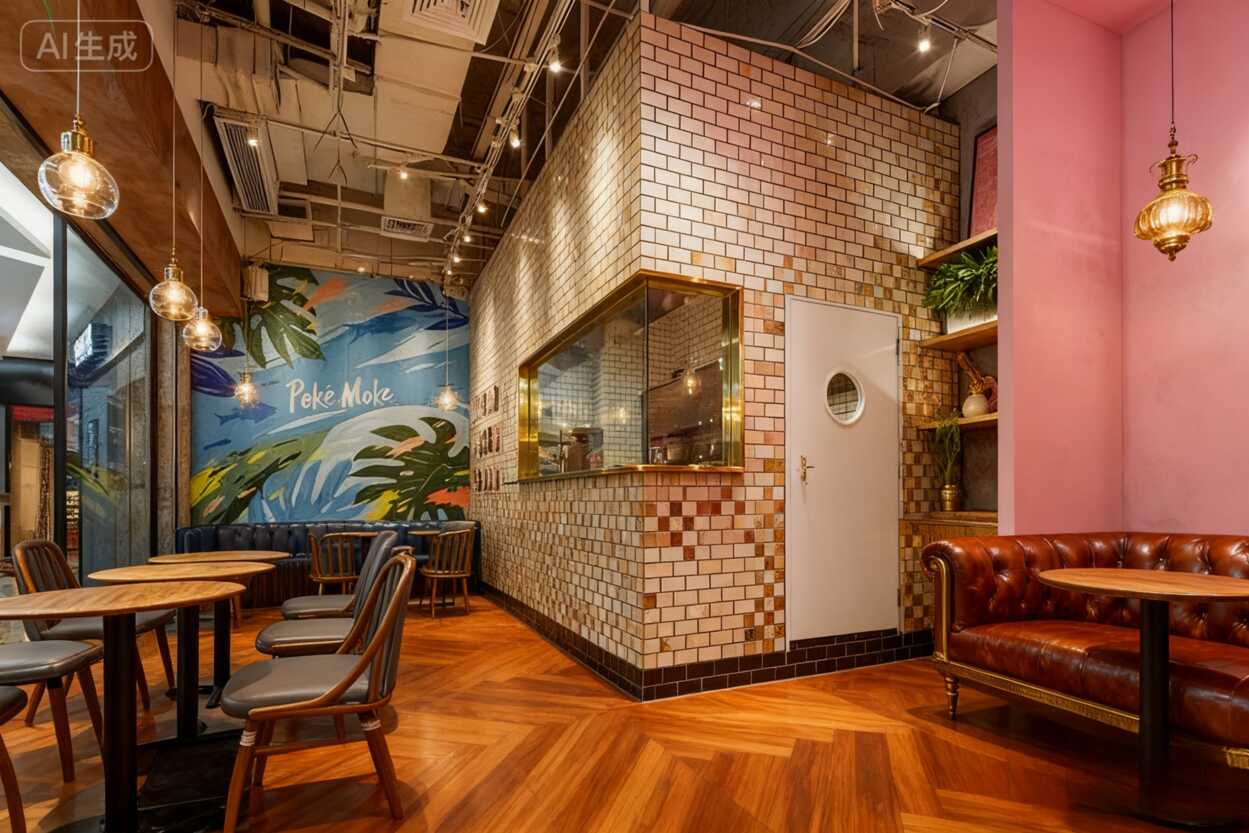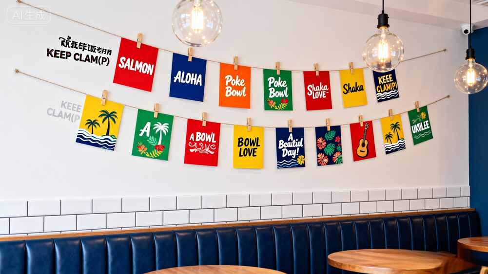 🥑 这家Poke店软装设计太会了!灰墙木架+治愈粉海报,进去就不想走!