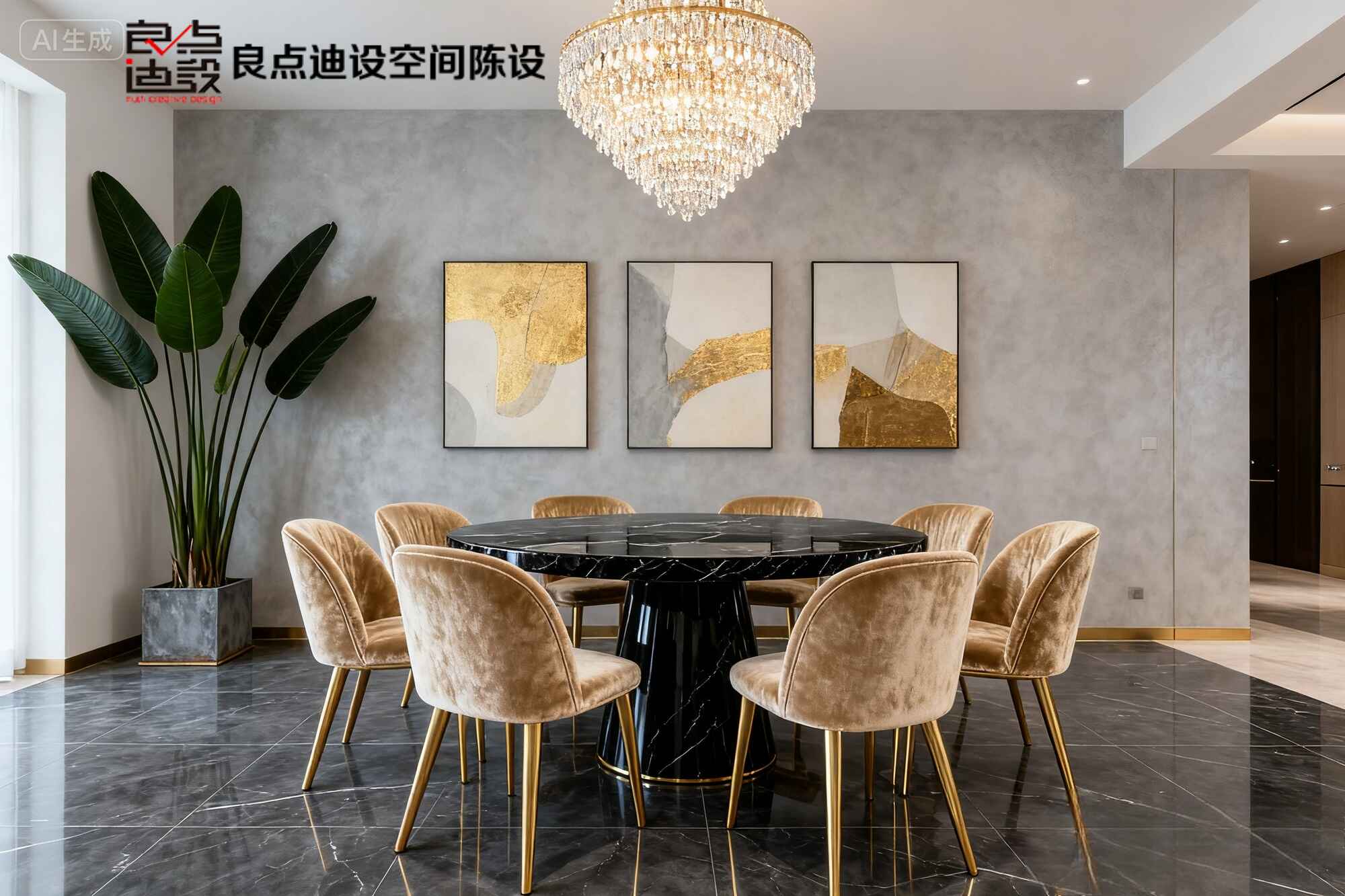 🔥 黑金配色绝绝子!这套轻奢风餐厅装修软装设计,我直接码住复制!