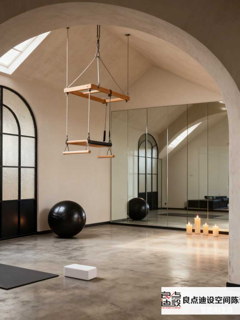 弧形门洞+圆形镜!这间普拉提室温柔到心巴上了🌙