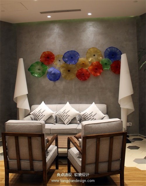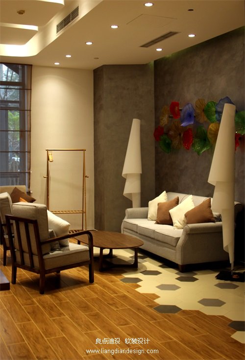 在软装设计中将山水的大自然灵性融入空间中,使其翔动一种源自自然的艺术氛围,山水、竹子、流沙、雨花石、绿植及原木等这些元素运用其中,使整个空间一步一景,一份宁静的北欧风情。装饰材料主要有木材、石材、玻璃和铁艺等,都无一例外地保留这些材质的原始质感。它所呈现出来的是非常接近自然的原生态的美感,没有一点多余的装饰,一切材质都袒露出原有的肌理和色泽。