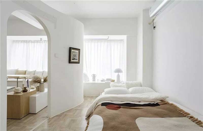 小空间城市ins风民宿通过设计师精心的设计也可以变成一个有趣的充满仙气的空间,民宿整个空间虽然只有50多平米,但是通过设计师的精心设计将餐厅、厨房、卧室、卫生间等功能需求满足后依然显得十分开阔舒适。