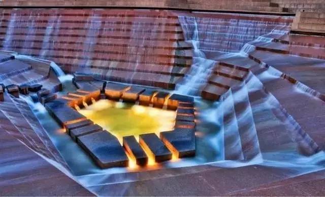 这种水景更像是迷你版的瀑布,尽可能的去展现水坠落的形态,以及落在不同建筑物上面水花四溅时的优美弧线。这种水景,大部分都是出现在现代庭院中,给人一种简单大方的感觉,十分适合现代年轻人。