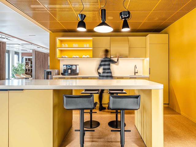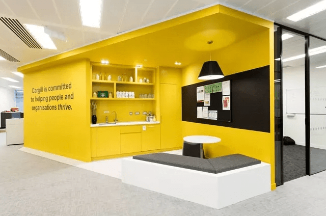 茶水吧的实用性也很重要。员工需求不仅仅是享受食品和饮料,同时也需要一个舒适的、有足够空间和储物的区域。设计师可以考虑为茶水吧提供充足的存储柜,以便于员工放置私人物品和储藏杯子等物品,避免茶水吧有混乱的感觉。