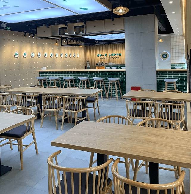 家具材料的选择可以根据餐厅的整体风格和氛围来进行选择。常见的家具材料有实木、人造板、金属等。实木家具具有天然、环保的特点,但价格较高;人造板家具则价格较为实惠,但易受潮、易变形;金属家具则可以增加餐厅的现代感和科技感,但易受氧化、易刮花。