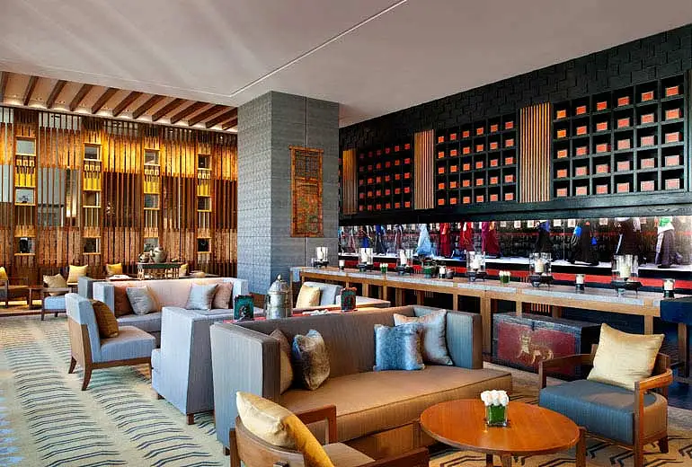 与之相反,度假酒店更多的考虑了场所的公共性,注重打造出一个大家庭的感觉,引导客户平衡内心,忘却繁忙琐碎,享受悠闲自在的度假时光。在空间布置和家具选择上更多的尽可能与旅游区域文化遥相契合,在灯具、饰品、艺术品、家具、餐具和厨房等一系列设计中都充满了大自然的光彩和度假酒店特有的兴趣和情趣。
