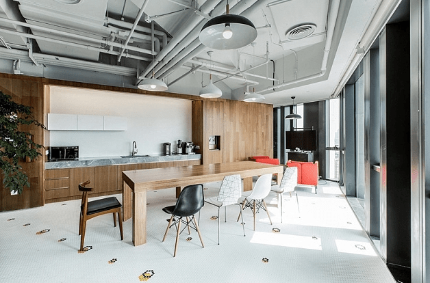 3、灯光设计:灯光可以营造出不同的氛围和情绪,例如柔和的灯光可以增加办公空间的舒适感和温馨感。灯光还可以用来强调特定区域或物品,例如展示柜、艺术品等。