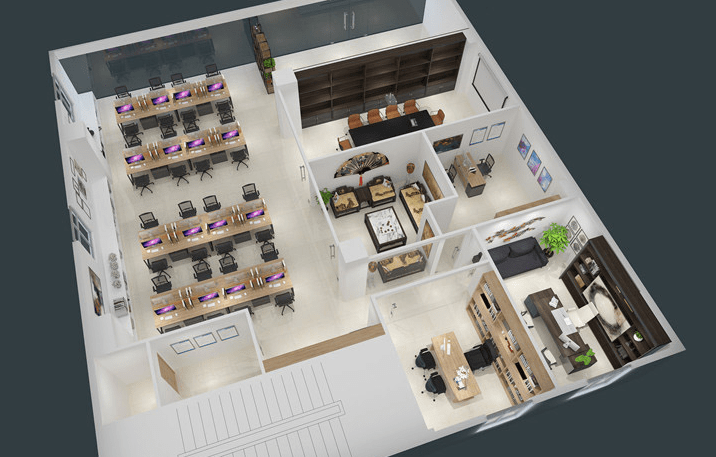 (3)针对员工工作类型和性质不同,设立不同类型的工作区域,如会议室、休息室、打印室等。