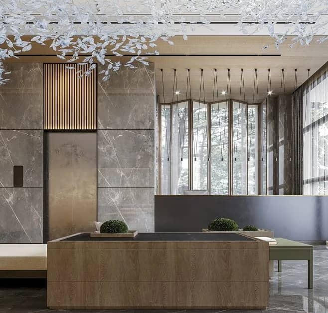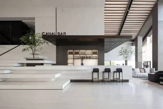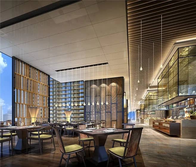 大堂作为主要的流通场所,是酒店交通的枢纽,可以为客人提供接待、等候、休息、交流等功能空间。从酒店管理的角度来看,大堂是一个控制中心,工作人员可以从这里观察和控制酒店的基本事务。