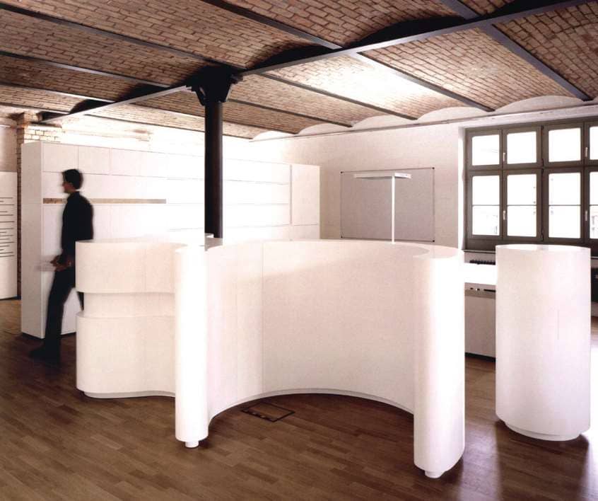 上面组图显示了云南浩瀚电子公司的办公空间设计。因为办公空间是出租的,所以设计要考虑装修投入和出租空间之间的问题。要解决这个问题,关键是设计的人文理念起着至关重要的作用。这个设计引用了外科“移植”的概念,将办公家具作为办公空间的内脏,通过灵活的设计移植到出租场地,从而解决了投资和出租的矛盾。