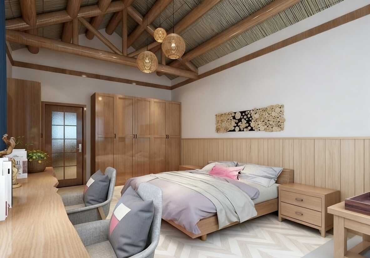 关键词:自然风民宿设计、原木色系软装、斜面屋顶装修、草编吊灯、民宿改造灵感、治愈系卧室、小众民宿设计、低成本软装搭配