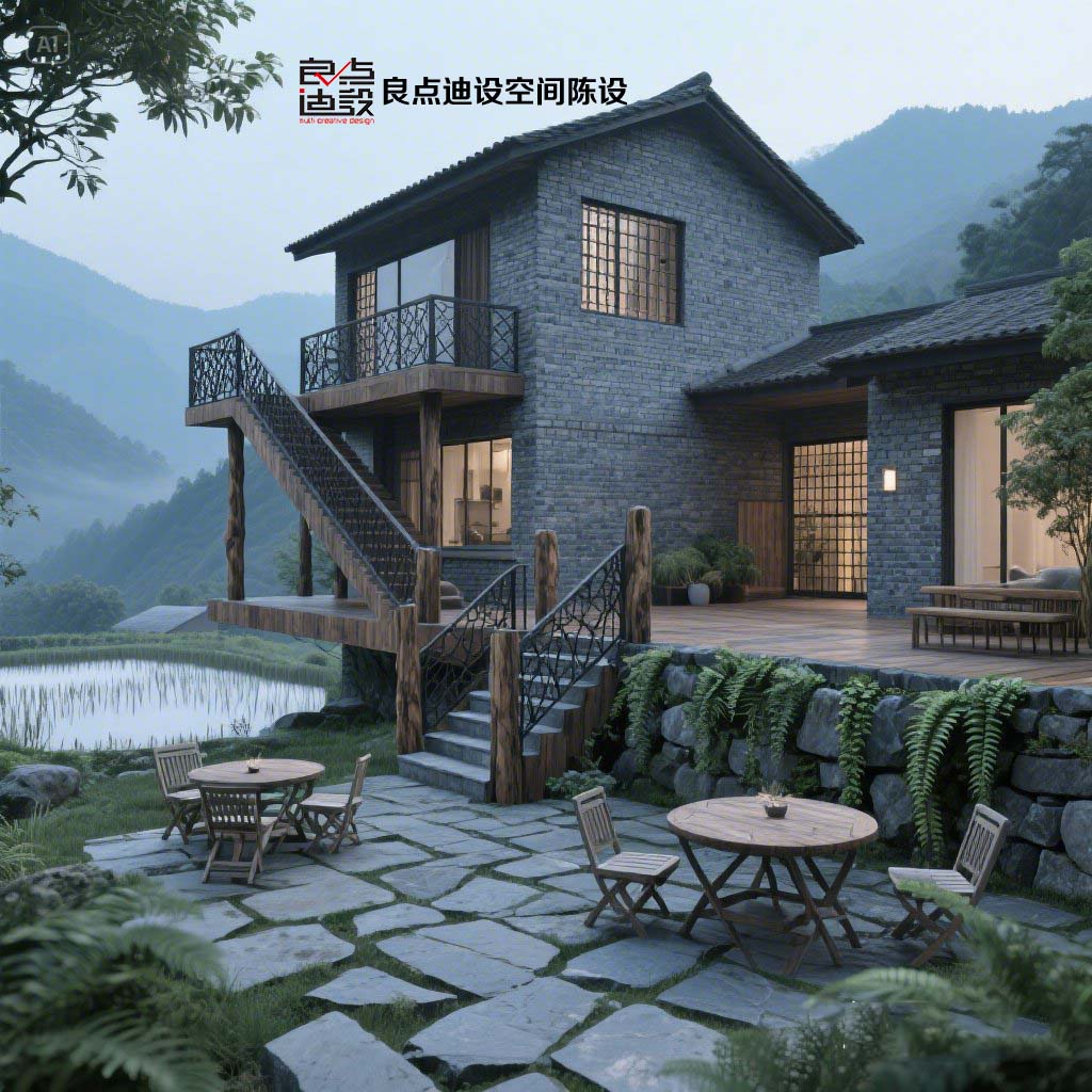 民宿软装设计教科书级案例!灰砖+原木的神仙搭配我直接封神!