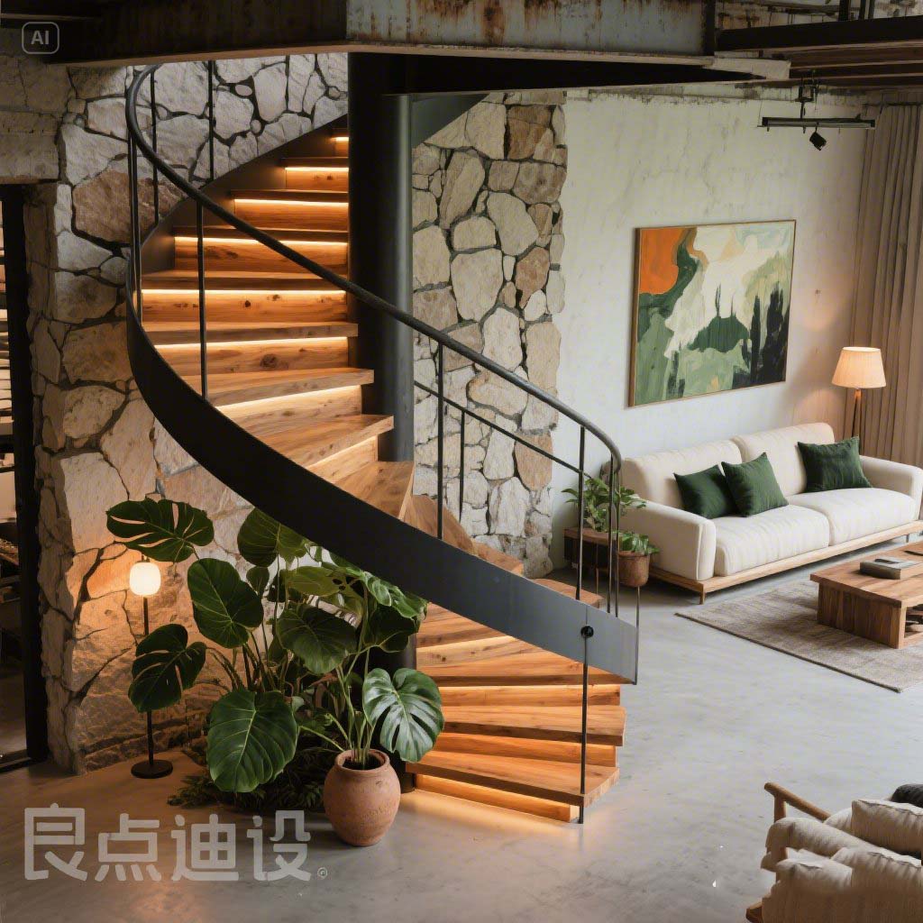 民宿软装设计氛围感天花板被我找到了!螺旋楼梯+暖光石墙原地封神