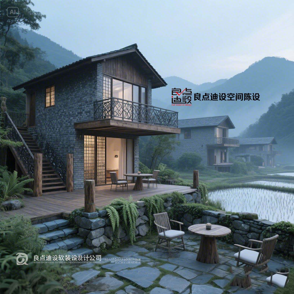 出圈民宿软装设计㊙️灰砖木纹配云雾山景也太绝了吧!