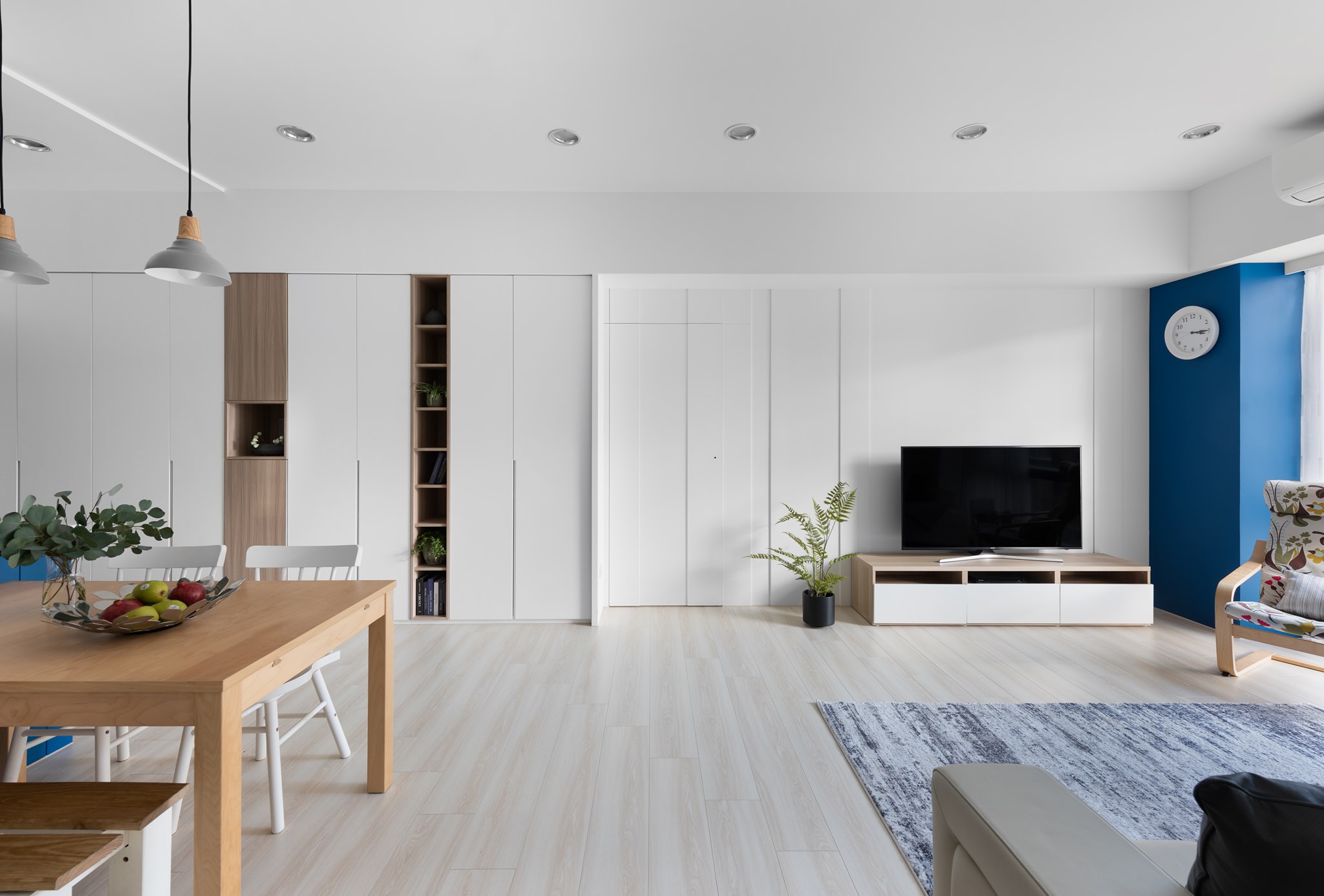 第三套案例和之前两个相比,多了些冲撞和个性,比较像是黎明破晓时的天空,带着一份清丽与闲适,甚至有那么一点高冷,但又特别的优雅。所以,当色彩运用好的时候,是非常能给空间加分的