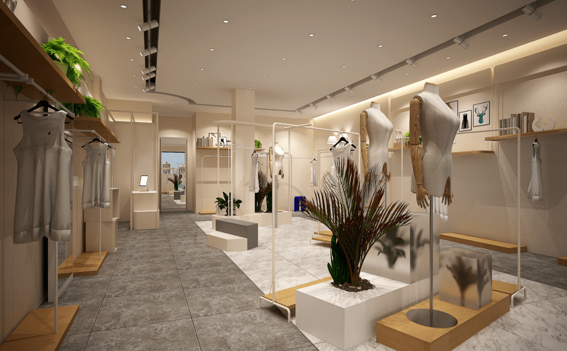 其次,现代化的服装店面设计应注重舒适性。舒适的店面空间可以使顾客在购物过程中感到放松和愉悦,从而更有可能进行购买。为了实现这一目标,店面设计师可以从多个方面入手。首先,合理的空间布局是关键。店内的通道宽度应该足够宽敞,以便顾客自由行走和浏览商品。此外,店内的座椅和休息区域也应提供舒适的座椅和充足的空间,让顾客可以休息和放松。同时,店内的温度、湿度和照明也需要适宜,以确保顾客在店内感到舒适。