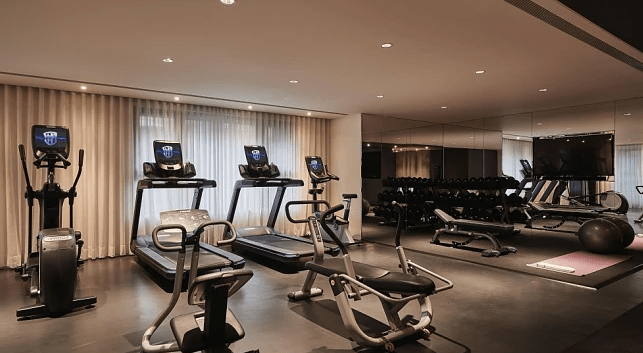 其次,设备选择是酒店设计中健身房设计的关键一环。一个好的健身房需要配备合适的健身器材,以满足客人的不同健身需求。在设备选择方面,需要考虑到客人的健身目标和健身水平。例如,对于力量训练,可以选择哑铃、杠铃、健身器械等设备;对于有氧训练,可以选择跑步机、动感单车、划船机等设备。此外,还需要考虑到设备的质量和安全性,以确保客人的健身安全。通过合理的设备选择,可以提供多样化的健身选择,满足客人的不同健身需求。
