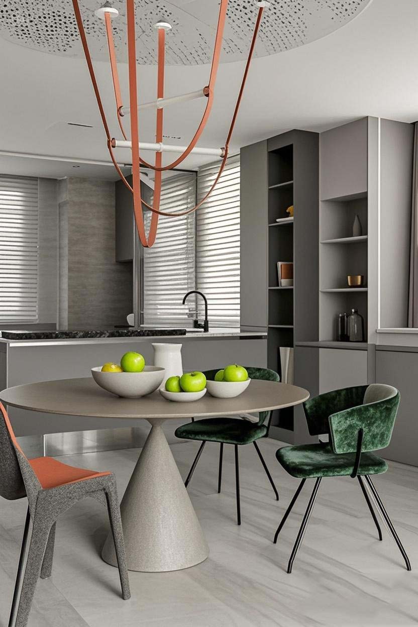 餐厅与厨房由一道玻璃门隔开,利用玻璃的通透感,营造出连续的视觉印象,既能隔离油烟,又能保持与家人的沟通,增进家人之间的互动。