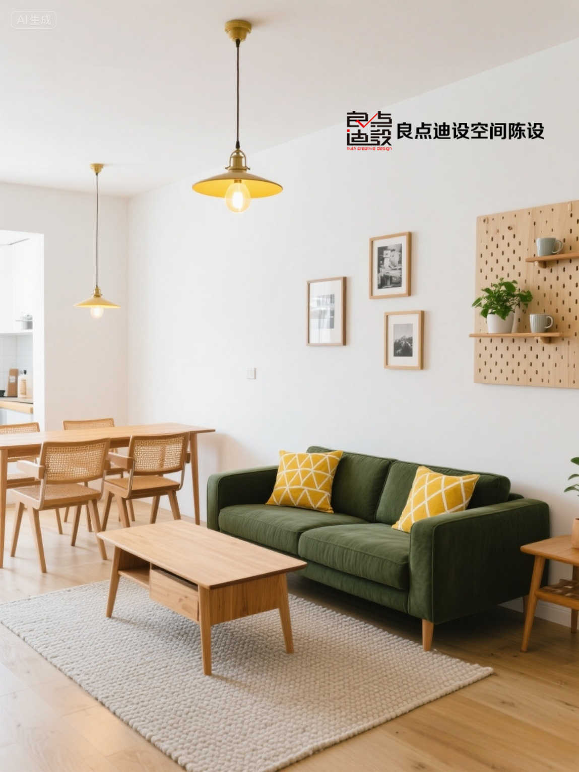 客厅,布艺沙发搭配日式原木茶几,灰色沙发的素雅质感,让整个客厅氛围更加舒适。一盏落地氛围百褶灯,打造温馨自然的居家氛围感。