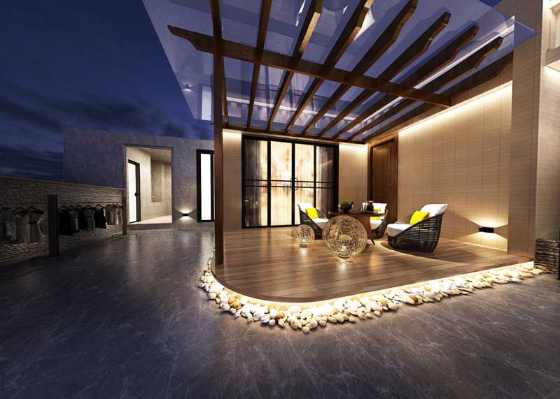 自贡民宿设计公司将民宿楼顶设计成一个开放式的休闲空间,透明的玻璃可以让我们躺在沙发上喝着咖啡随时随地欣赏美丽的星空,休闲区外在民宿墙面设计了一条环形的景观区,使我们更加贴近自然。抬...