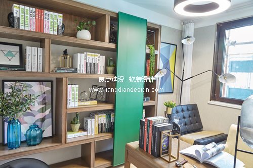 宝宝睡着了,她给男主人送去一杯咖啡,来到书房门口,映入眼帘的便是孩子童趣的涂鸦:其实这个黑板是书柜的推拉门。书柜里陈列着他们各自爱看的书和各地淘来的小摆件,前面小号的陀螺椅是男主给宝宝买的,这些富有设计感的家具与饰品不仅漂亮,潜移默化的让家人格调与气质都得到提升。