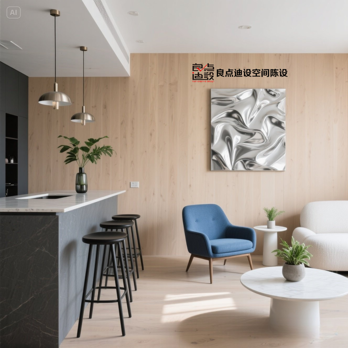 救命!这吧台软装设计美到窒息!✨ 金属吊灯+大理石台面,绝了!
