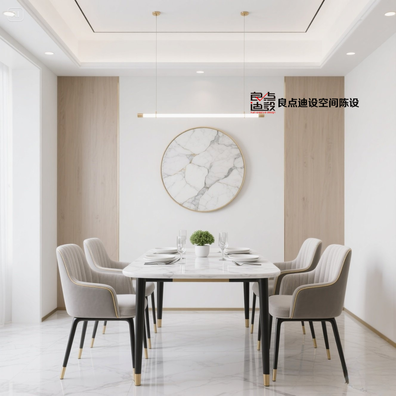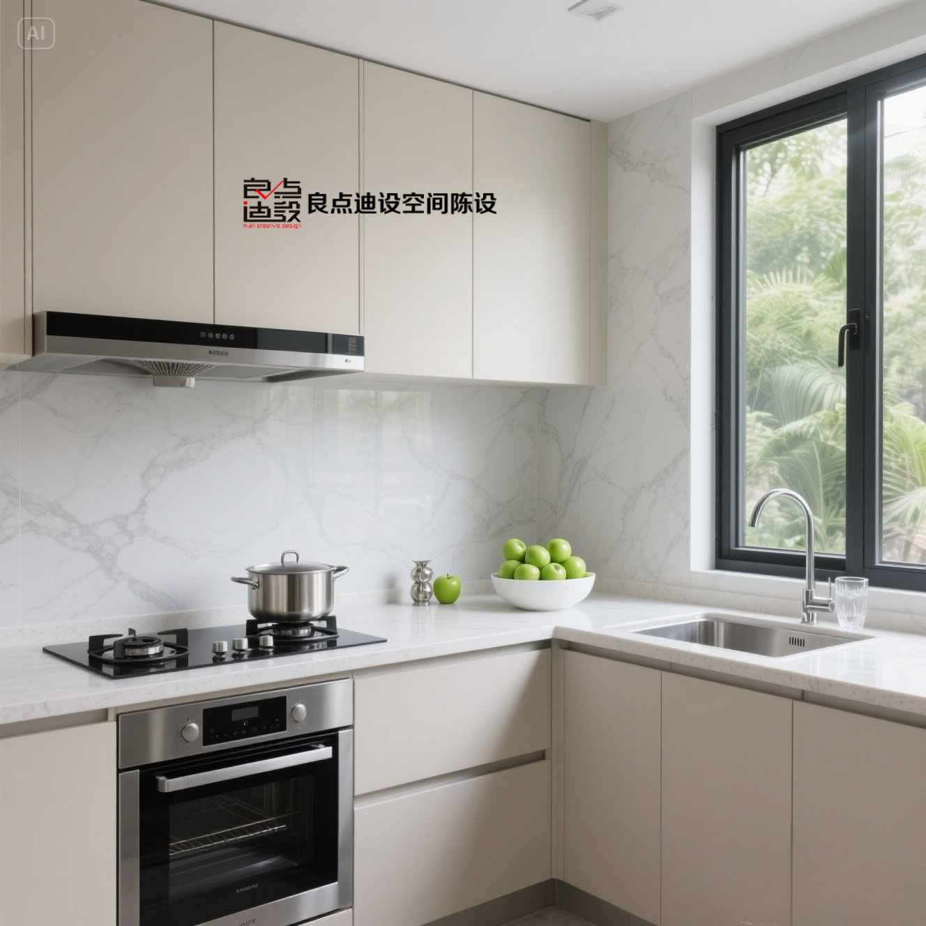 ✨米白+大理石的组合直接封神!这间厨房样板间软装设计美哭我❗️