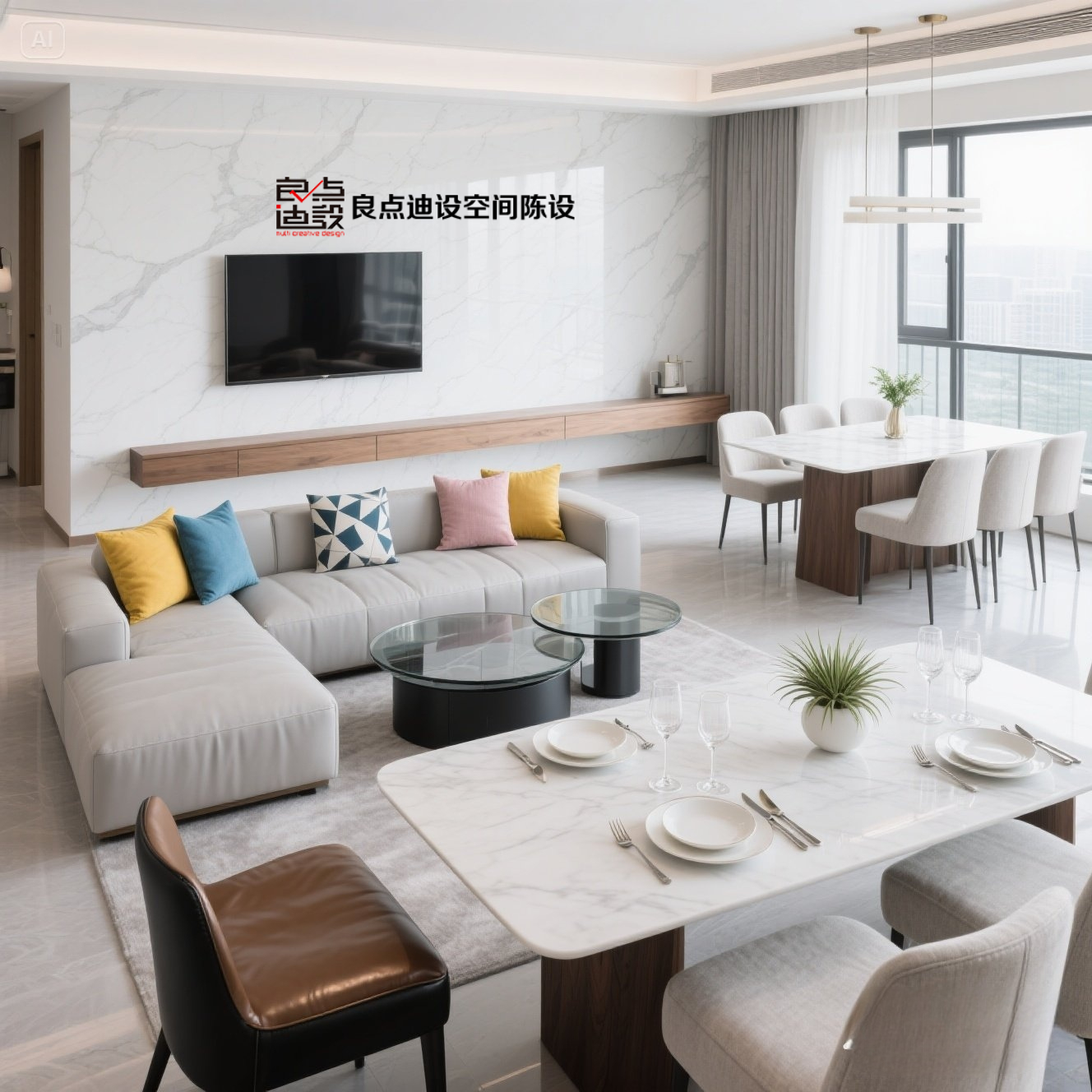 💥轻奢餐厅软装设计被扒疯!大理石+跳色封神搭配