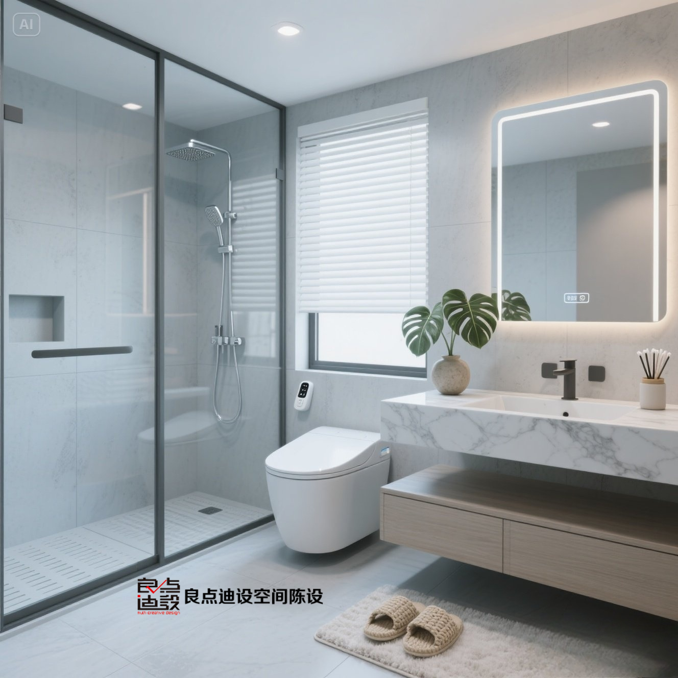 🔥 看完只想说:抄作业!这间灰白卫生间封神了!干湿分离+智能镜YYDS!