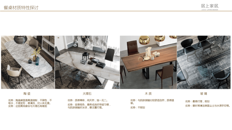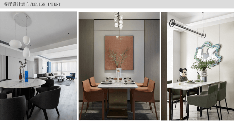 餐厅 延续现代简约风格,餐桌可以选择不同的材质来装饰餐厅,不同的材质其实就会体现出不一样的氛围,比如大理石更偏刚硬,木质更偏柔软,玻璃更偏通透,包括像岩板更偏硬朗,可以根据性格的喜好想要的空间感觉。