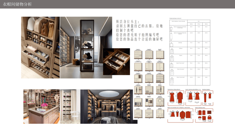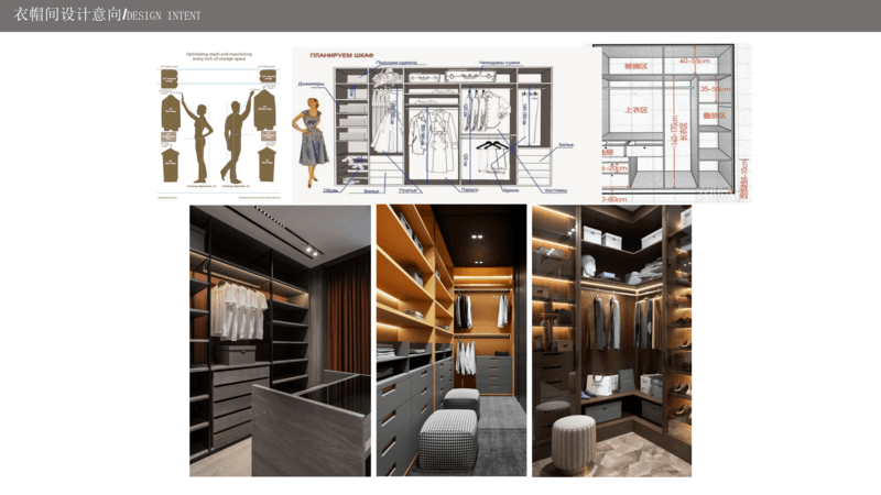 整个空间的衣帽收纳,首先应该结合业主的工作生活习惯,同时根据身高做个性化的定制设计,区分开长短衣物、包包、帽子、皮带等区域日常收纳的习惯。