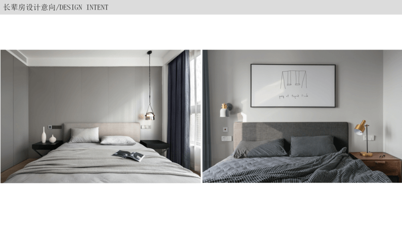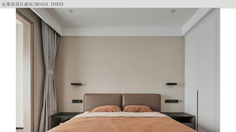 长辈房 以简约大气为主,随着年纪的增长,生活需求是方便安全为主,以简单的装饰画为背景或者做简单软包,整个空间显得温馨一些,放置床头柜灯方便起夜,按需要增加收纳即可。