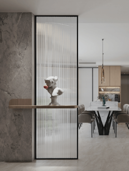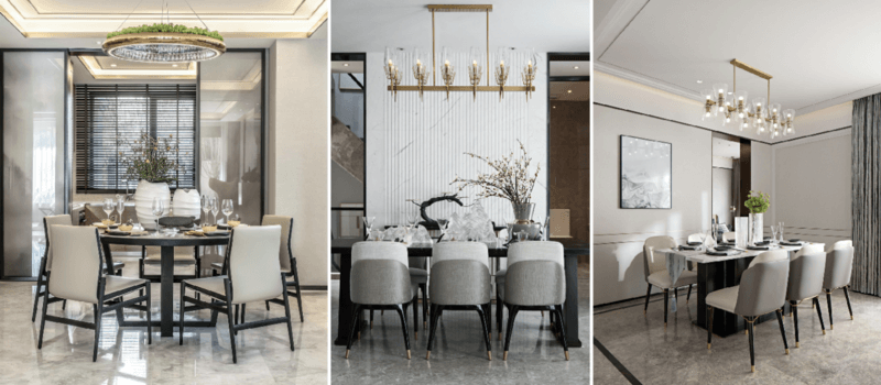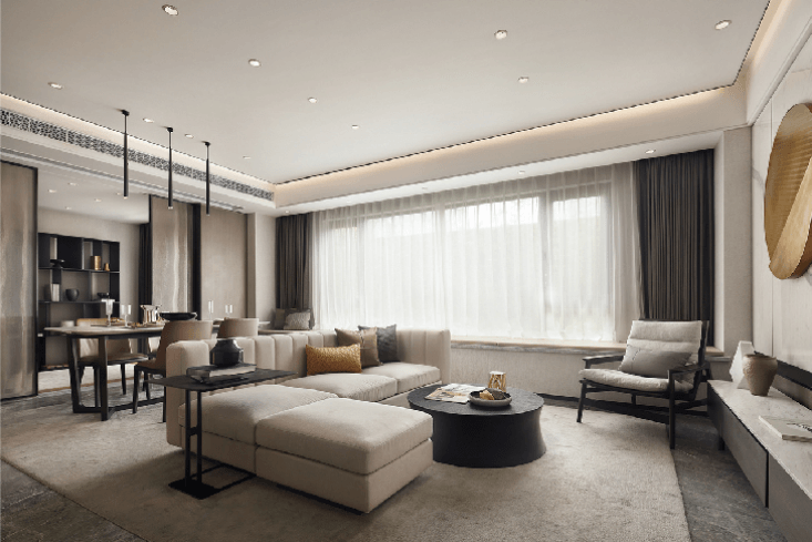 餐客厨一体,让空间效率变得更高,功能能够重叠使用,如餐桌贴近厨房,餐桌可以作为备餐区,餐厅与客厅相融,餐椅也是客厅的“沙发”。