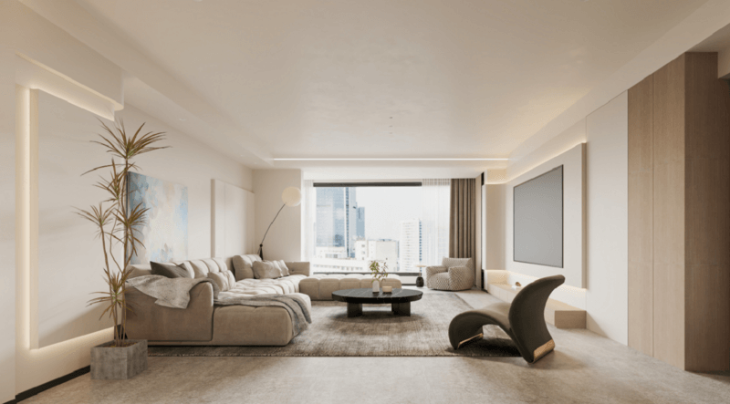 进门看见的是客厅,可以两边靠墙做顶天立地式收纳柜,打造一个兼具美观与实用的入户空间,既能提升家的颜值,又能为家打造一个功能区。如果不考虑储物,就可以用玻璃作为隔断。玻璃隔断不会影响室内采光,还有增加室内通透感的作用。