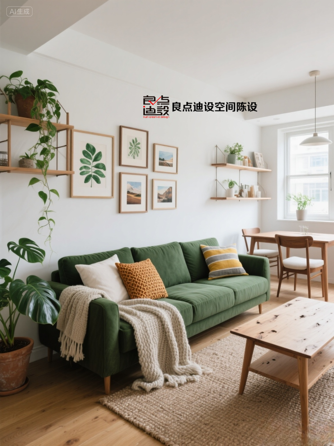 原木风≠只能配米白!看图右边,墨绿绒布沙发配亮黄花纹抱枕,撞得那叫一个妙!深色沙发压住场子,亮色抱枕瞬间提亮空间。秘诀是啥?控制比例! 大面积中性色(木头/墙)打底,小面积跳色(抱枕/摆件)点睛。记住:抱枕就是你的吸睛利器!材质选绒面或编织,摸起来舒服,看起来高级。
