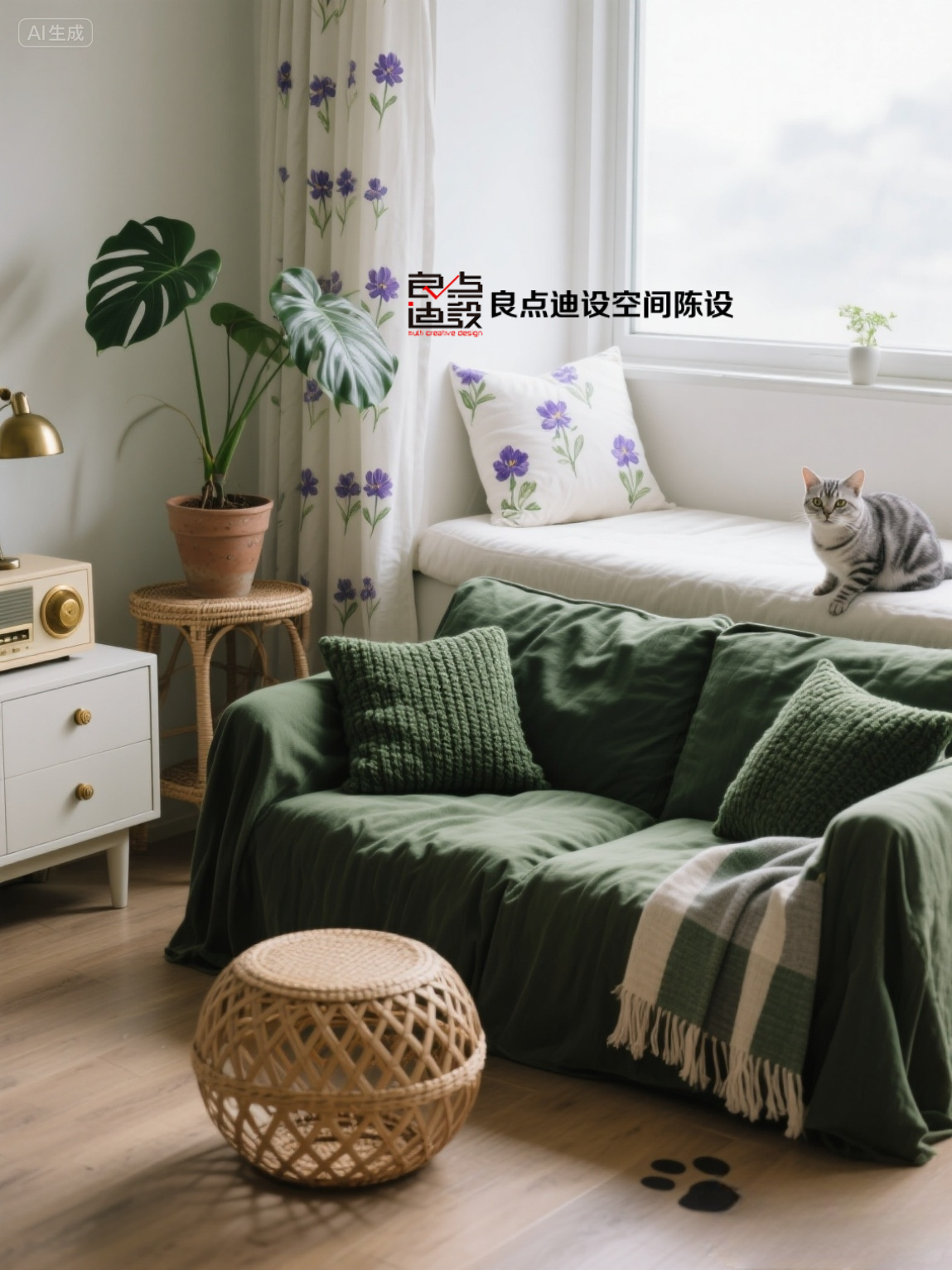 墨绿沙发+原木底子=没烟火气?7个呼吸感细节教你装出会“喘气儿”的家!