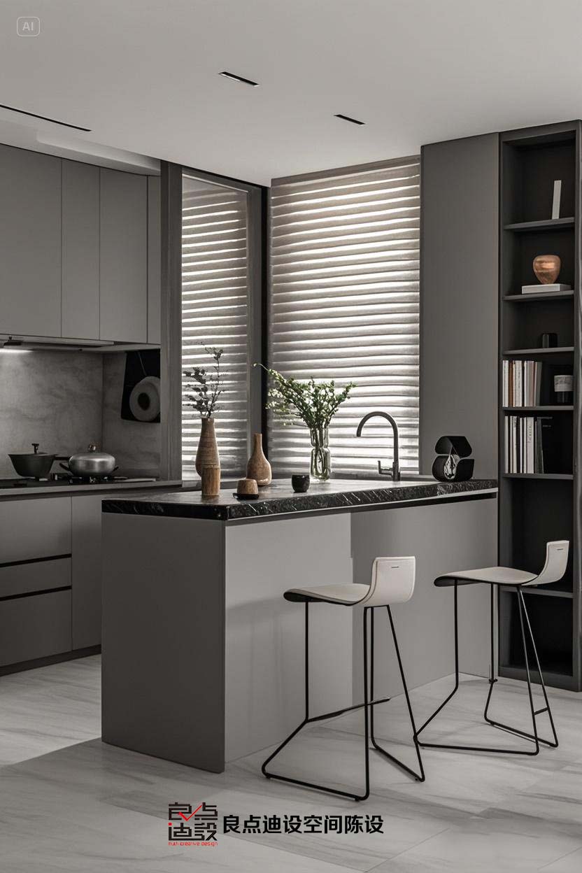 灰白黑厨房教科书级玩法|90%业主看完狂求软装设计方案